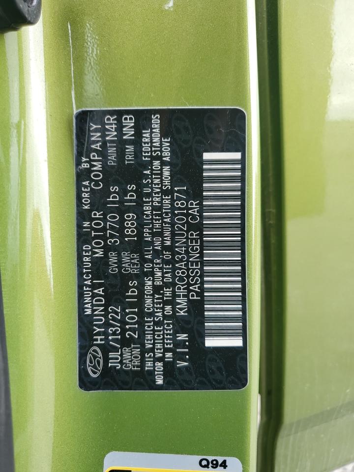 2022 HYUNDAI VENUE - KMHRC8A34NU201871, колір - Зелений, 1.6, Бензин, із США
