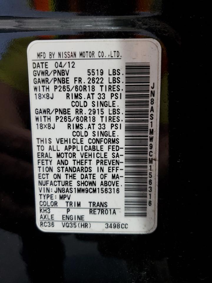 Колір ЧорнийЦиліндри 6Привід Повний привідVIN JN8AS1MW9CM156316Стан ЗаводитьсяУшкодження Передня або задня