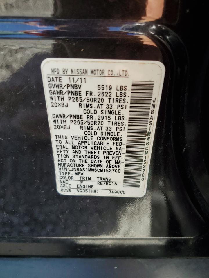 Колір ЧорнийЦиліндри 6Привід Повний привідVIN JN8AS1MW6CM153700Стан Заводиться та їде (перевірено)Ушкодження Вандалізм