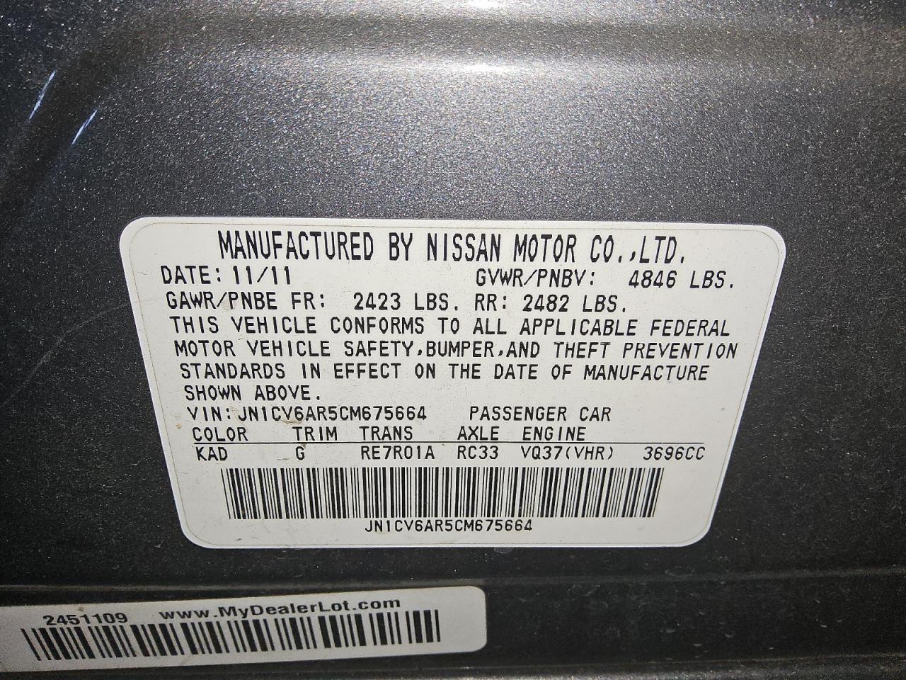 Колір СірийЦиліндри 6Привід Повний привідVIN JN1CV6AR5CM675664Стан Заводиться та їде (перевірено)Ушкодження НезначніДата аукціона 2025-10-07