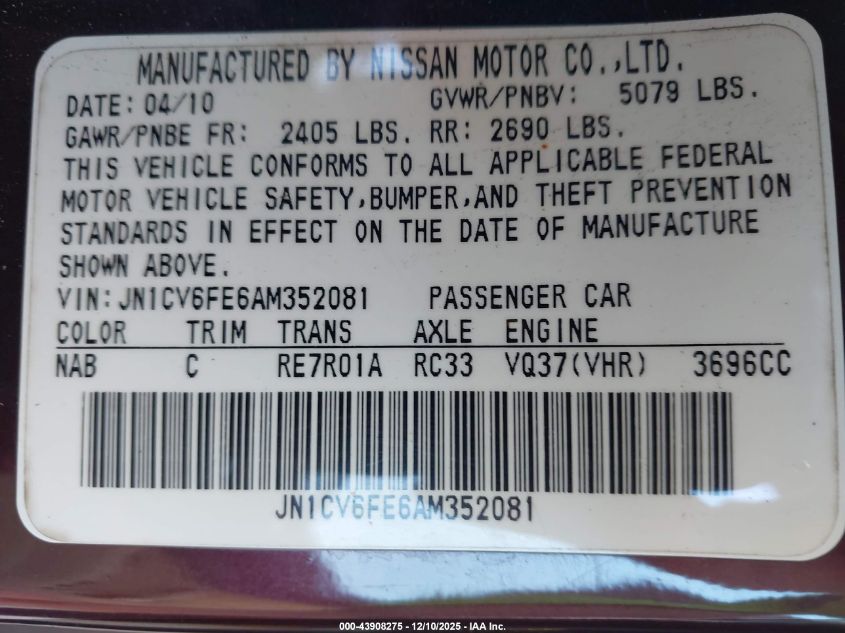 Колір БургундіяЦиліндри 6Привід Задній привідVIN JN1CV6FE6AM352081Стан Заводиться та їде (перевірено)Ушкодження Передня права