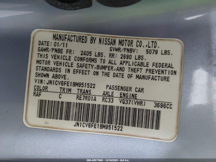 2011 INFINITI G37 BASE