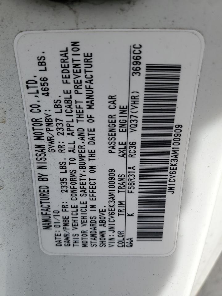 2010 INFINITI G37 - JN1CV6EK3AM100909, колір - Білий, 3.7, Бензин, Задній привід із США