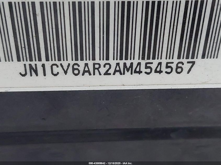 Колір ЧорнийЦиліндри 6Привід Повний привідVIN JN1CV6AR2AM454567Стан Заводиться та їде (перевірено)Ушкодження Передня або задня