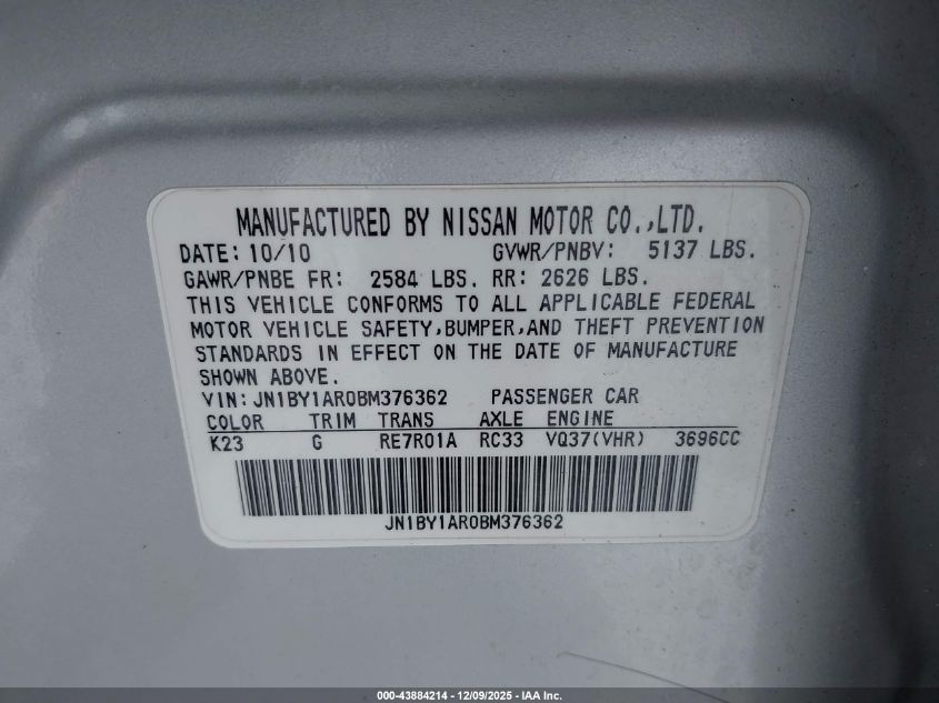 2011 INFINITI M37 - JN1BY1AR0BM376362, колір - Срібний, 3.7, Бензин, Повний привід із США