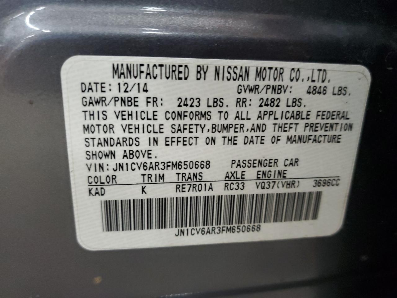 2015 INFINITI Q40 - JN1CV6AR3FM650668, колір - Срібний, 3.7, Бензин, Повний привід із США