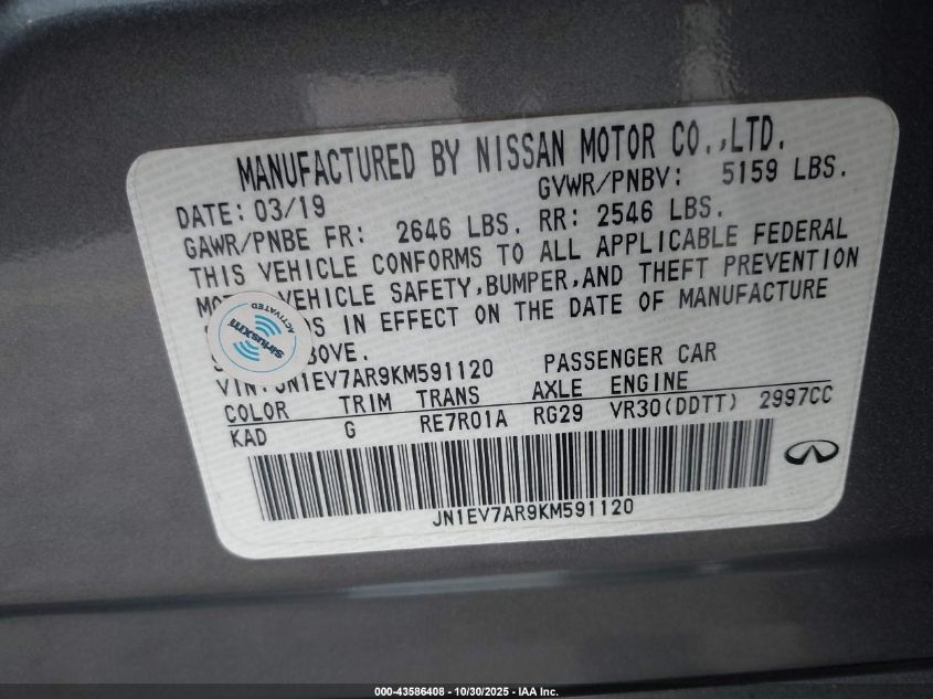 2019 INFINITI Q50 - JN1EV7AR9KM591120, колір - Сірий, 3.0, Бензин, Повний привід із США