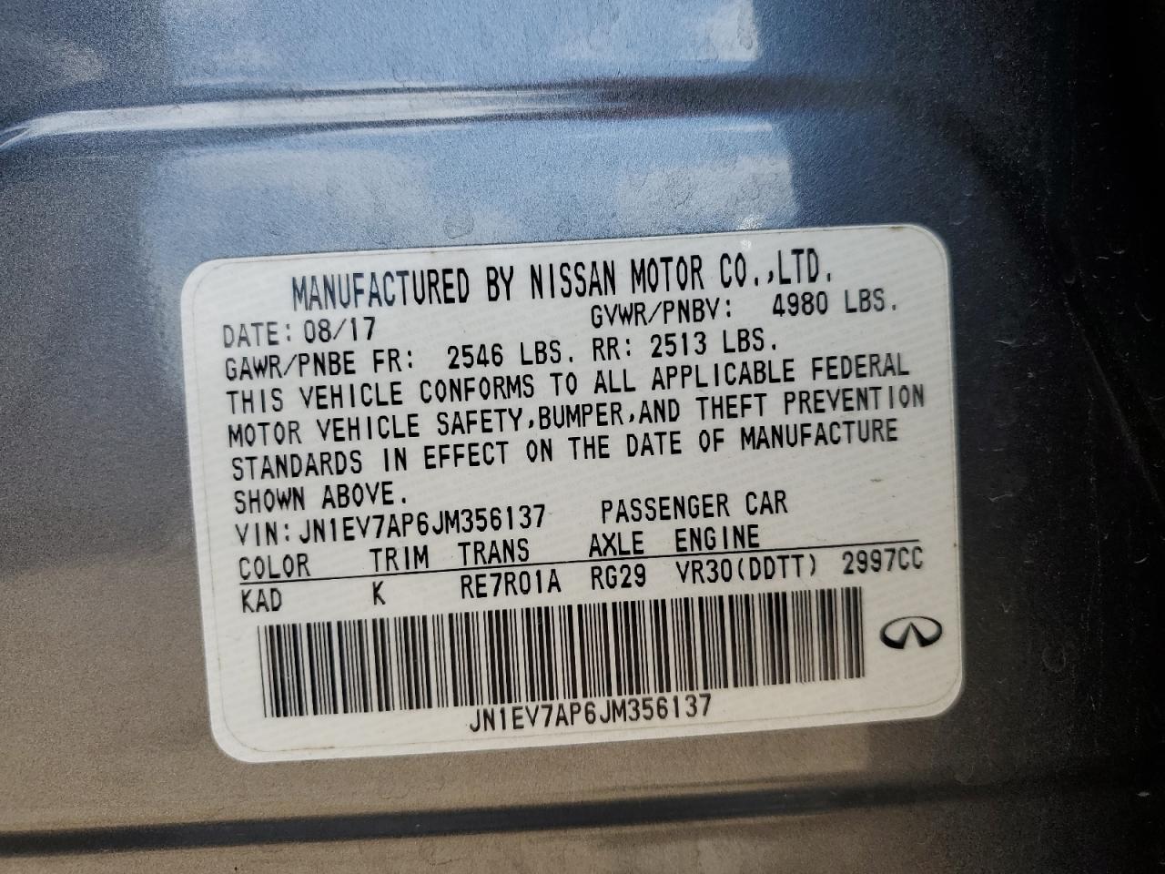 2018 INFINITI Q50 - JN1EV7AP6JM356137, колір - Сірий, 3.0, Бензин, Задній привід із США