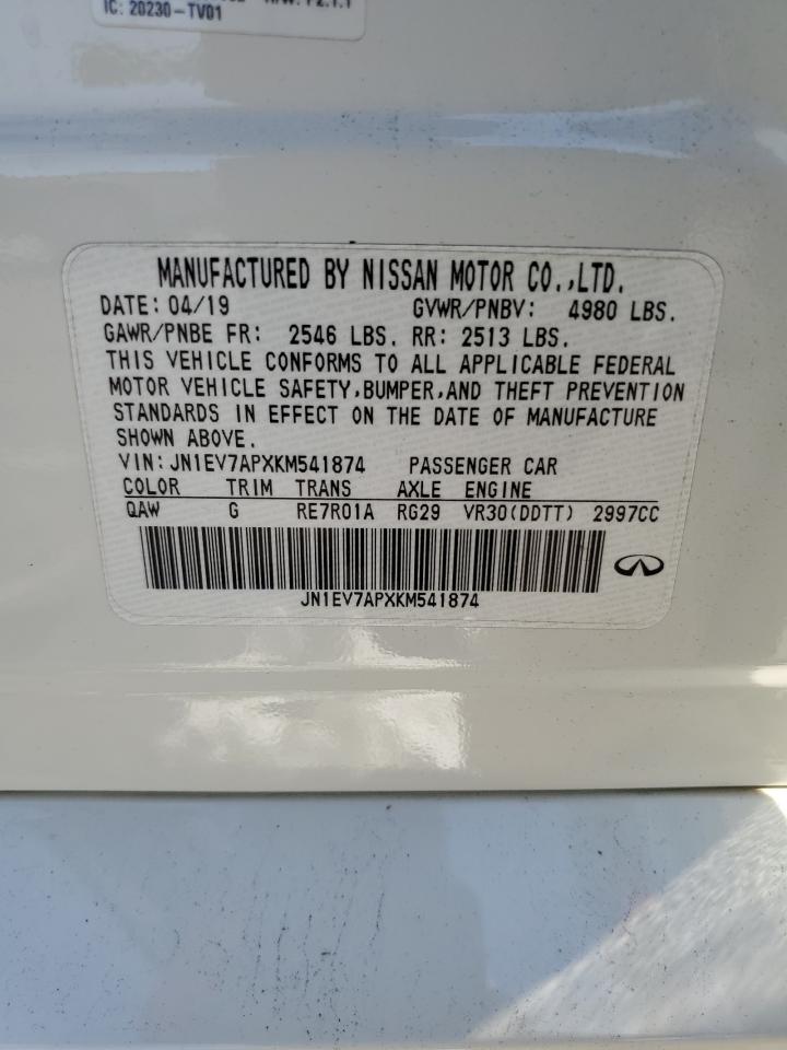 2019 INFINITI Q50 - JN1EV7APXKM541874, колір - Білий, 3.0, Бензин, Задній привід із США