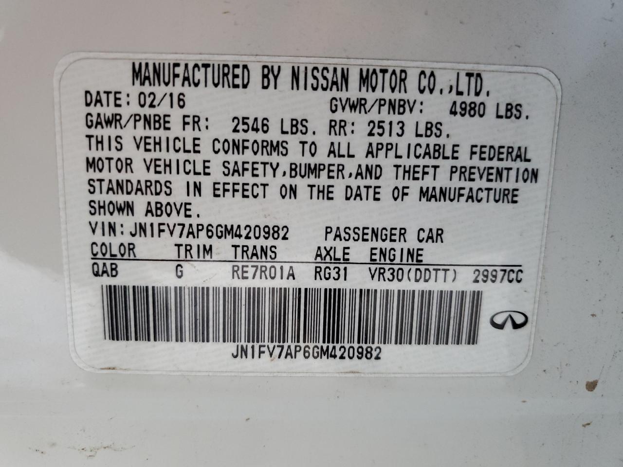 2016 INFINITI Q50 - JN1FV7AP6GM420982, колір - Білий, 3.0, Бензин, Задній привід із США