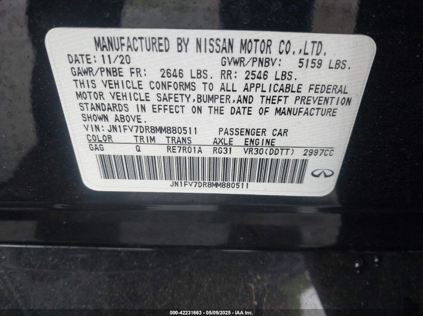 2021 INFINITI Q50 - JN1FV7DR8MM880511, колір - Чорний, 3.0, Бензин, Повний привід із США