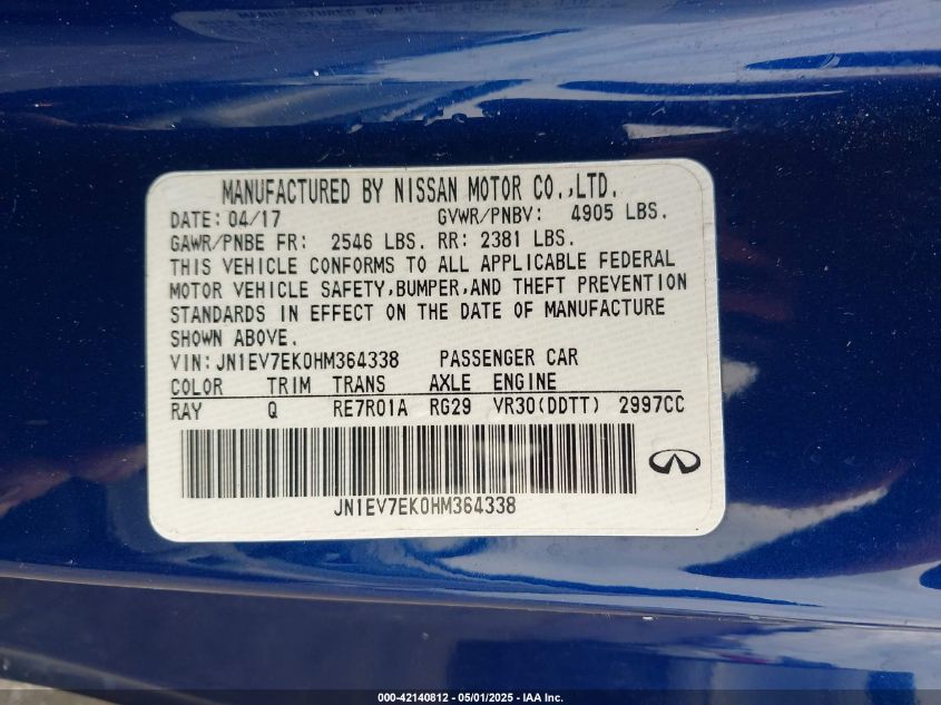 2017 INFINITI Q60 - JN1EV7EK0HM364338, колір - Синій, 3.0, Бензин, Задній привід із США