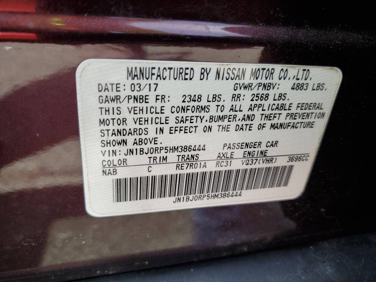 Колір БургундіяЦиліндри 6Привід Задній привідVIN JN1BJ0RP5HM386444Стан Заводиться та їде (перевірено)Ушкодження Передня або задня