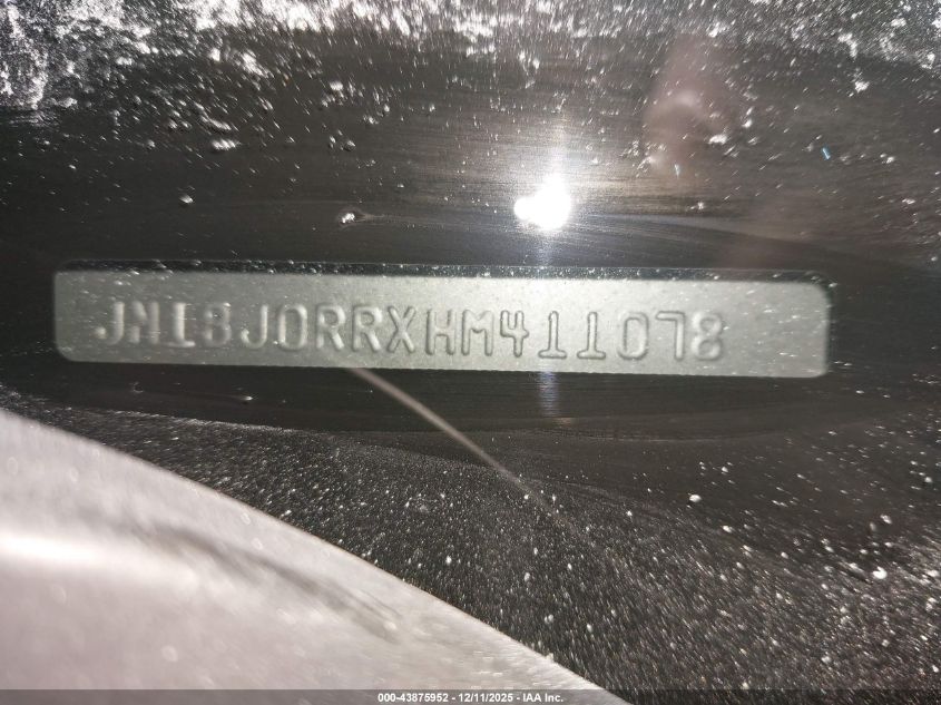 Колір СрібнийЦиліндри 6Привід Повний привідVIN JN1BJ0RRXHM411078Стан СтаціонарноУшкодження Ліва сторона