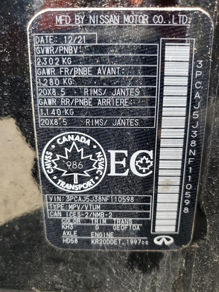 2022 INFINITI QX55 - 3PCAJ5J38NF110598, колір - Чорний, 2.0, Бензин, Повний привід із США