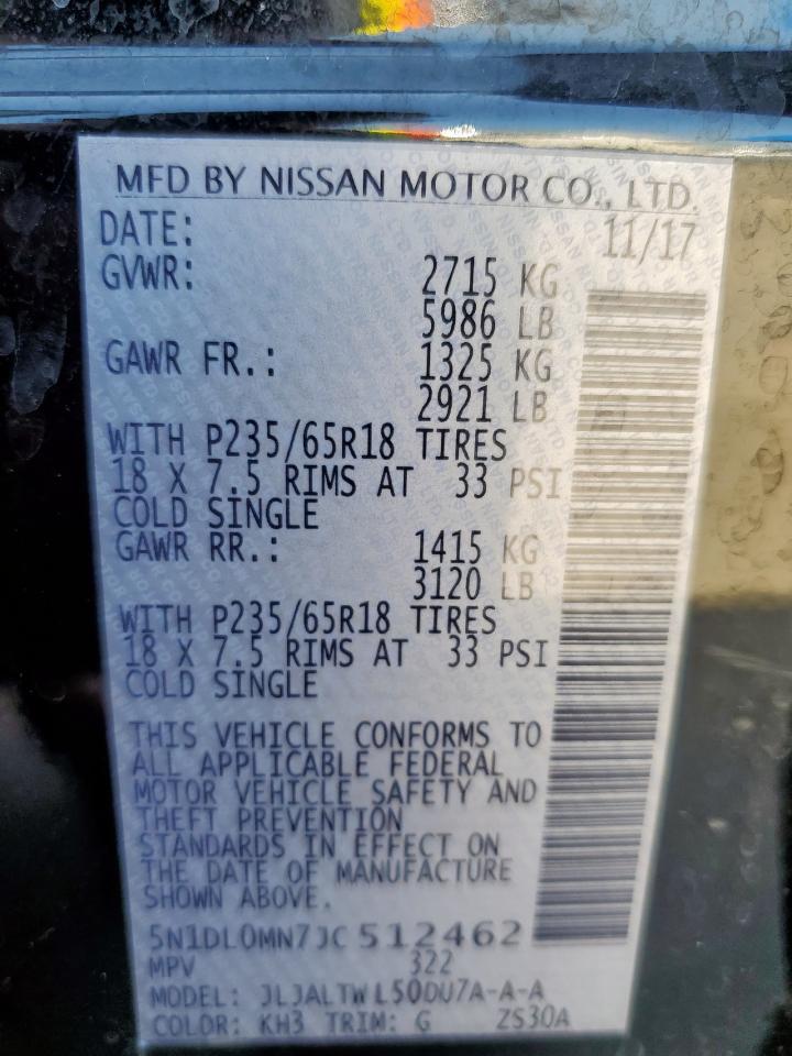 Колір ЧорнийЦиліндри 6VIN 5N1DL0MN7JC512462Стан Заводиться та їде (перевірено)Дата аукціона 2025-10-09