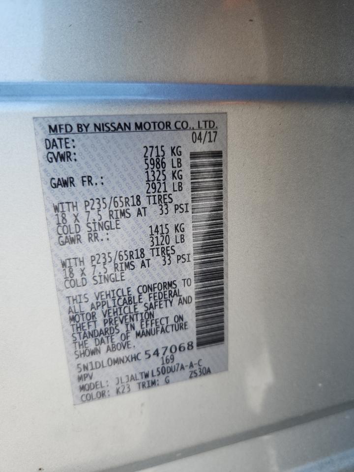 2017 INFINITI QX60 - 5N1DL0MNXHC547068, колір - Срібний, 3.5, Бензин, із США