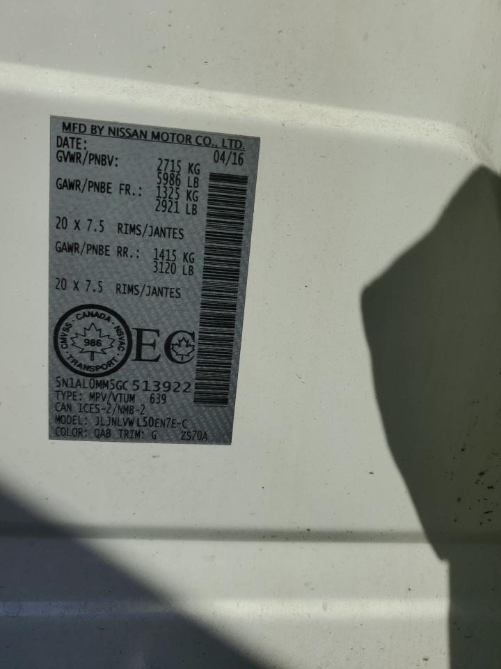 Колір БілийЦиліндри 6Привід Повний привідVIN 5N1AL0MM5GC513922Стан ЗаводитьсяУшкодження НезначніДата аукціона 2025-10-07