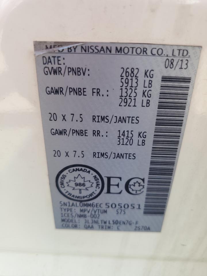 Колір БілийЦиліндри 6Привід Повний привідVIN 5N1AL0MM6EC505051Стан Заводиться та їде (перевірено)Ушкодження З боків