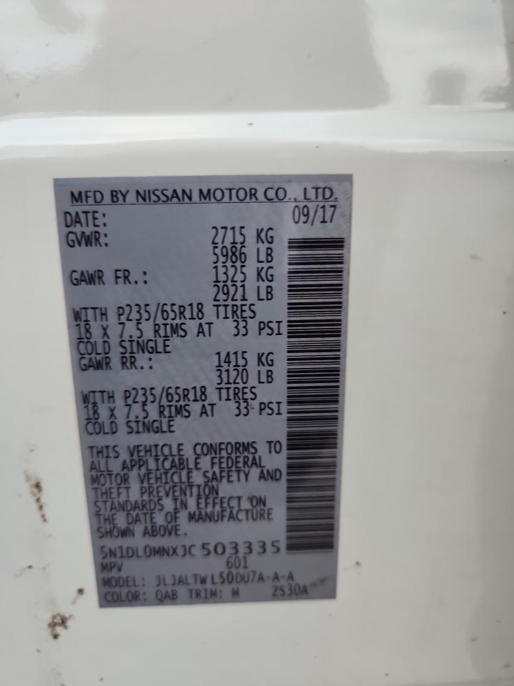 Колір БілийЦиліндри 6VIN 5N1DL0MNXJC503335Стан Заводиться та їде (перевірено)Ушкодження ЗадняДата аукціона 2025-10-08