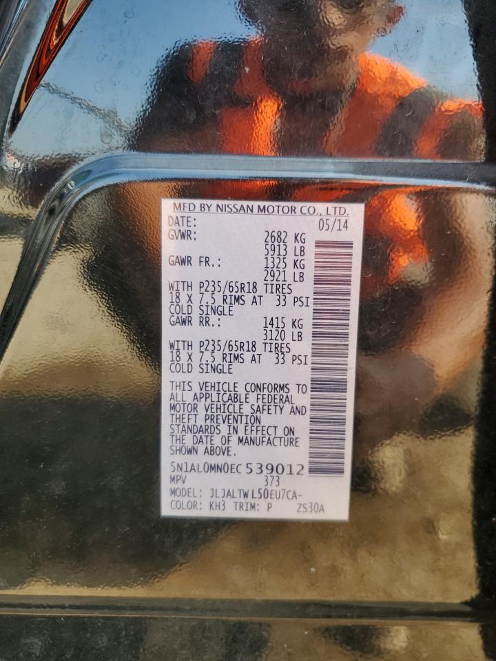 2014 INFINITI QX60 - 5N1AL0MN0EC539012, колір - Чорний, 3.5, Бензин, із США