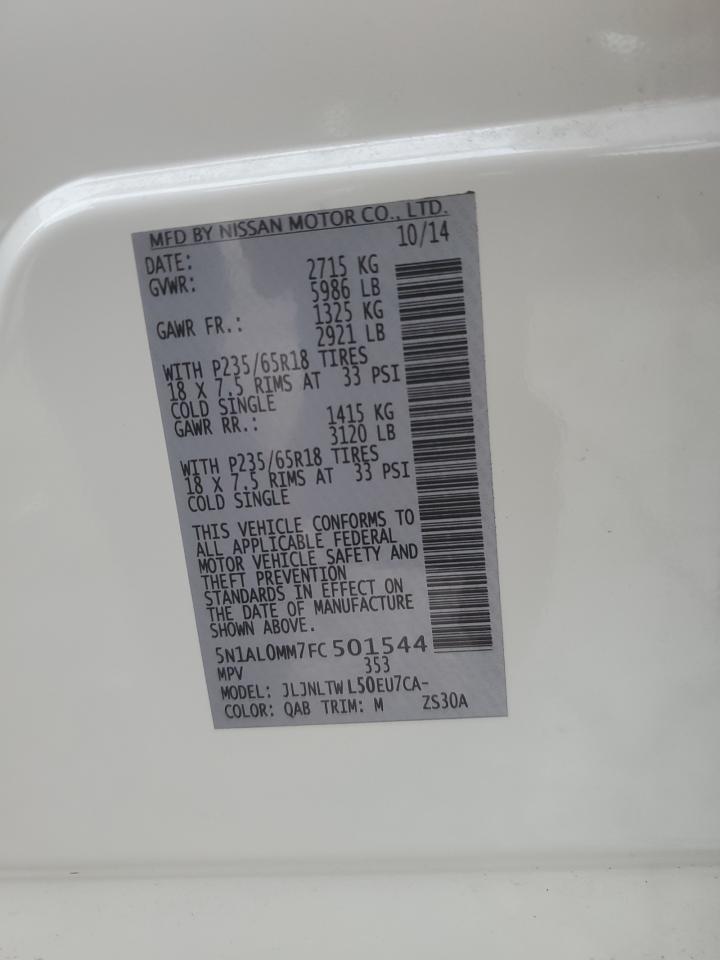 Колір БілийЦиліндри 6Привід Повний привідVIN 5N1AL0MM7FC501544Стан НевідомоУшкодження Вандалізм
