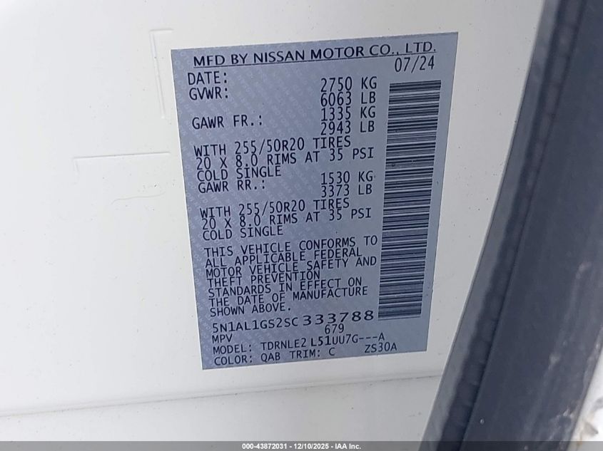 2025 INFINITI QX60 - 5N1AL1GS2SC333788, колір - Білий, 2.0, Бензин, Повний привід із США
