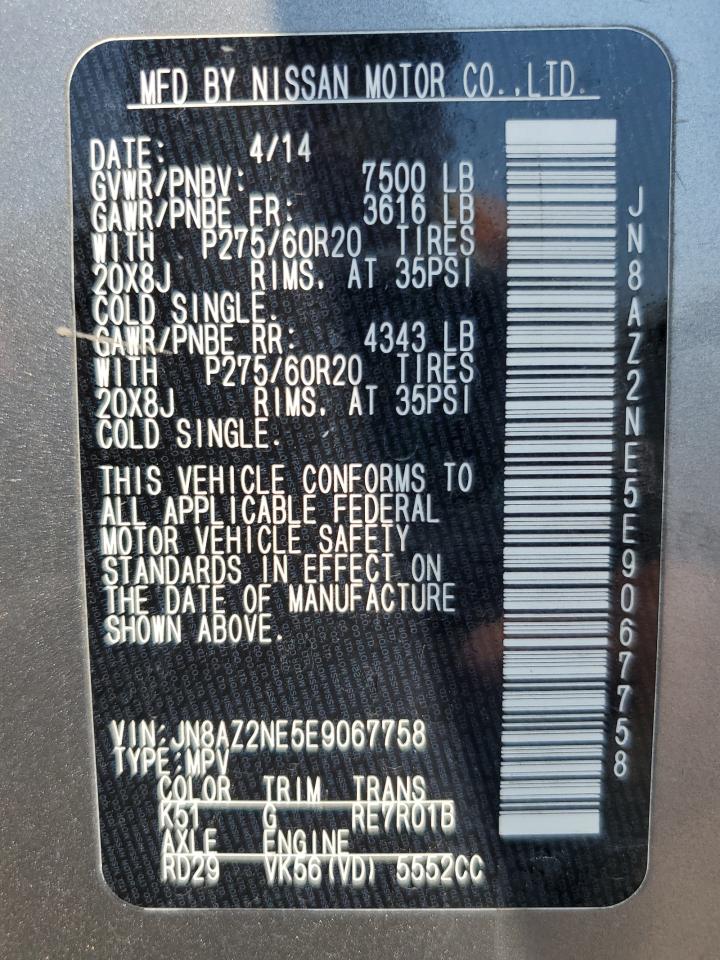 2014 INFINITI QX80 - JN8AZ2NE5E9067758, колір - Срібний, 5.6, Бензин, 4x4 з заднім приводом із США
