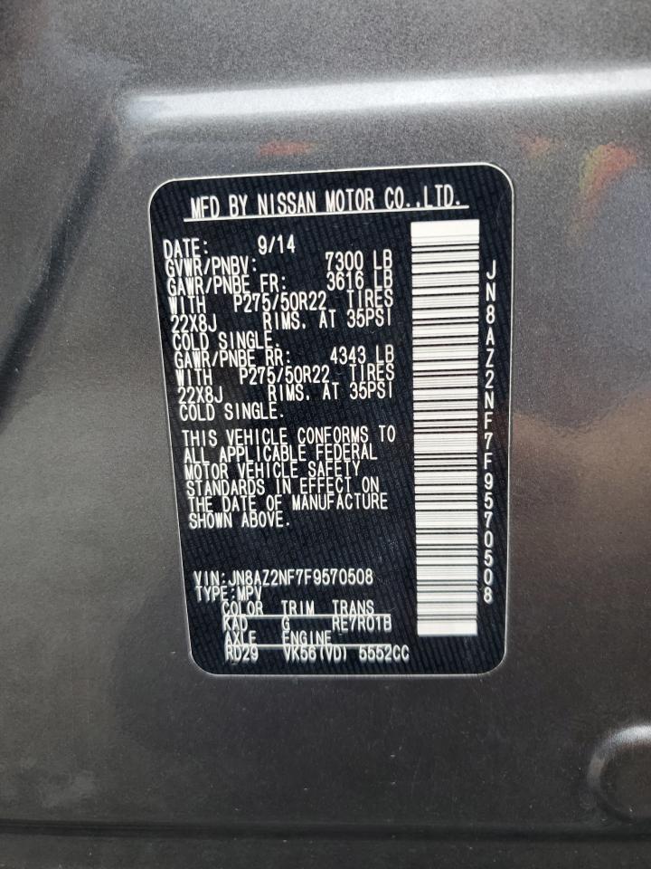 Колір СрібнийЦиліндри 8Привід Задній привідVIN JN8AZ2NF7F9570508Стан Заводиться та їде (перевірено)Ушкодження Передня або задня