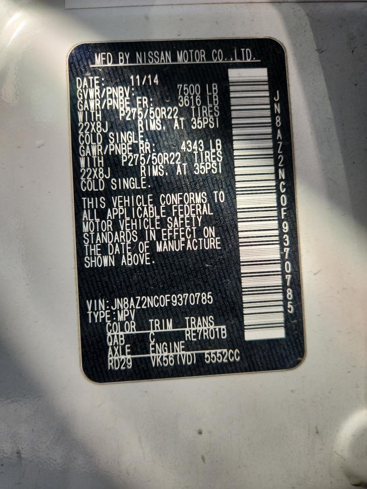 2015 INFINITI QX80 - JN8AZ2NC0F9370785, колір - Білий, 5.6, Бензин, 4x4 з заднім приводом із США