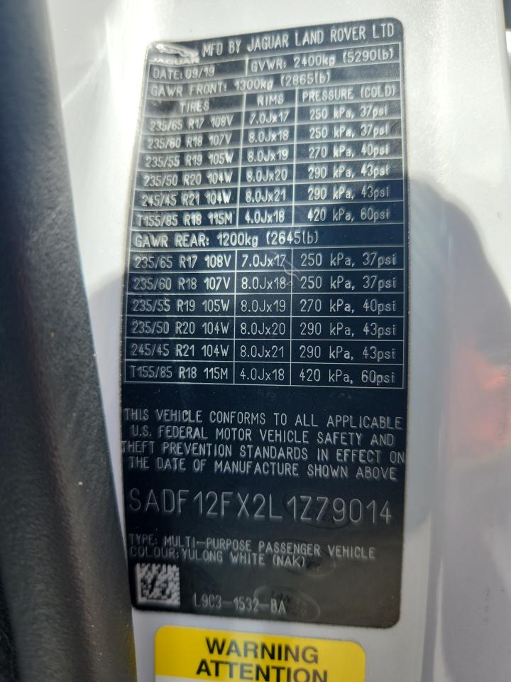 2020 JAGUAR E-TYPE - SADF12FX2L1Z79014, колір - Білий, 2.0, Бензин, Повний привід із США