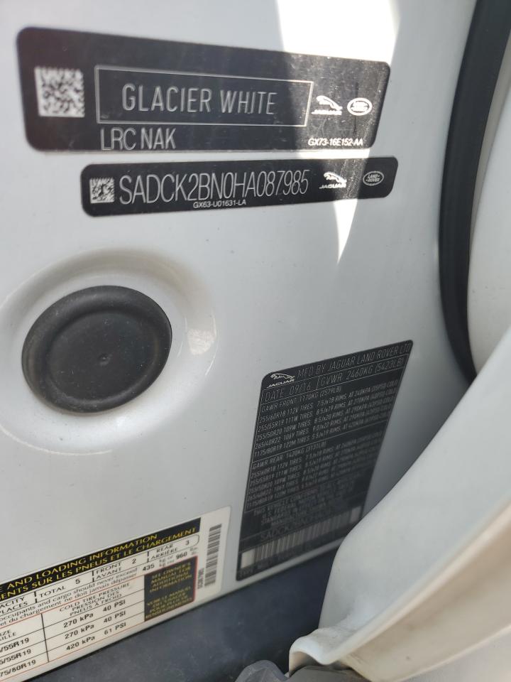 2017 JAGUAR F-PACE - SADCK2BN0HA087985, колір - Білий, 2.0, Дизель, Повний привід із США