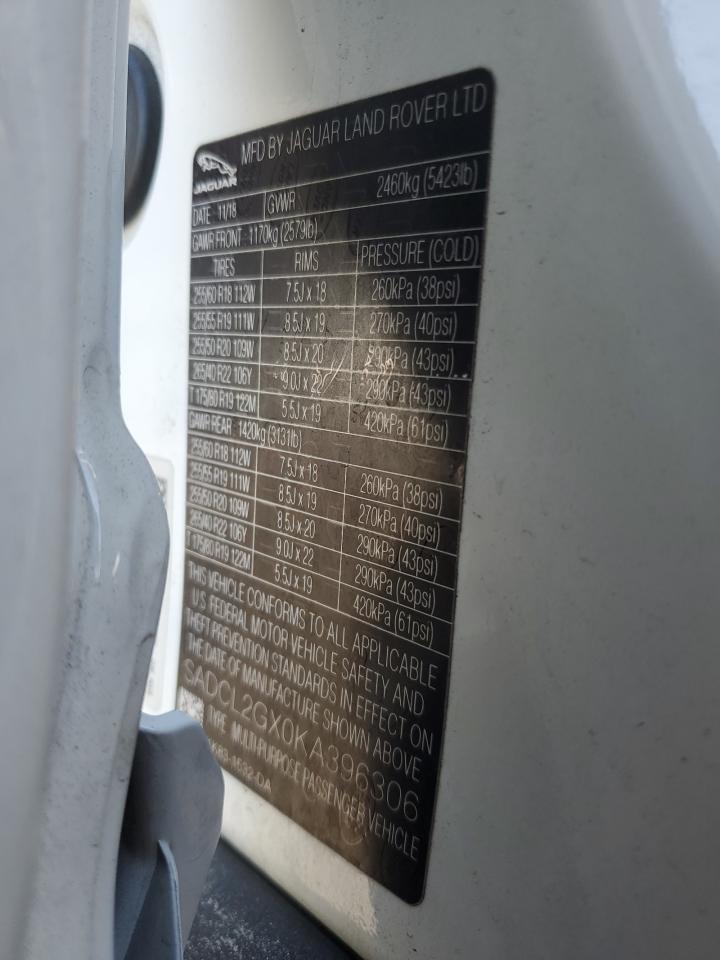 2019 JAGUAR F-PACE - SADCL2GX0KA396306, колір - Білий, 2.0, Бензин, Повний привід із США
