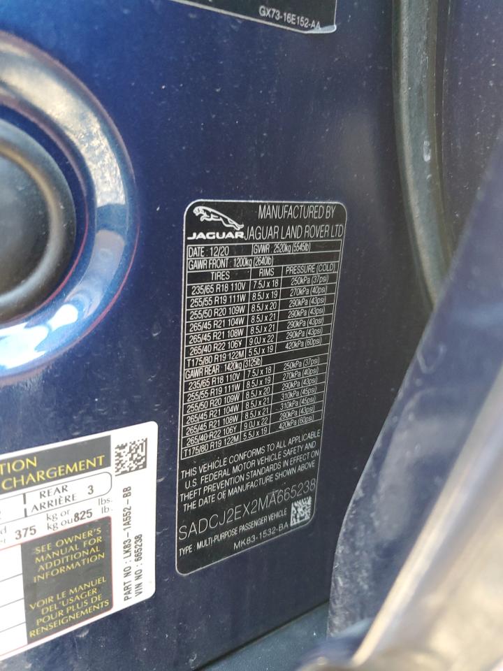 2021 JAGUAR F-PACE - SADCJ2EX2MA665238, колір - Синій, 2.0, Бензин, Повний привід із США