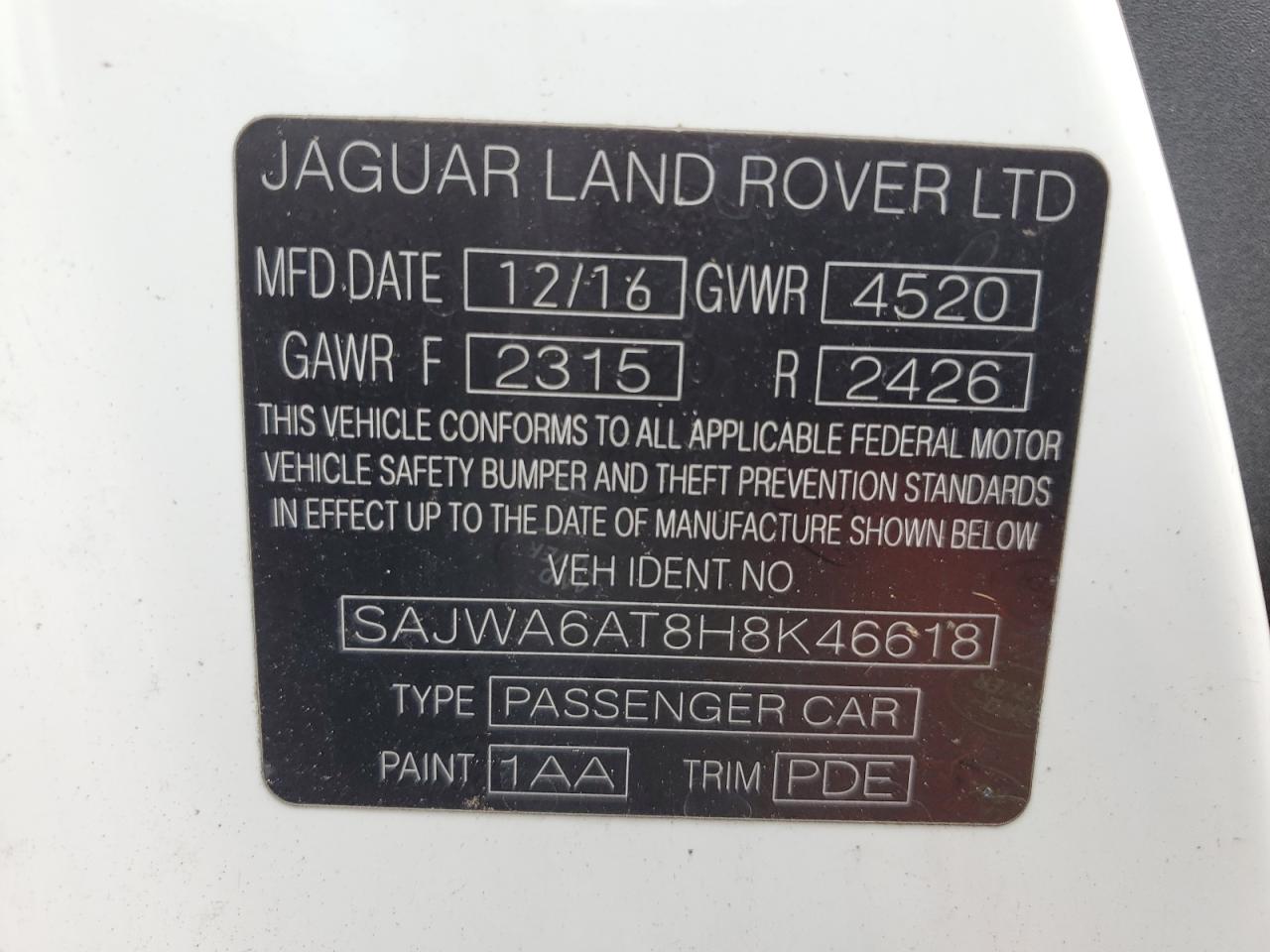 2017 JAGUAR F-TYPE - SAJWA6AT8H8K46618, колір - Білий, 3.0, Бензин, Задній привід із США