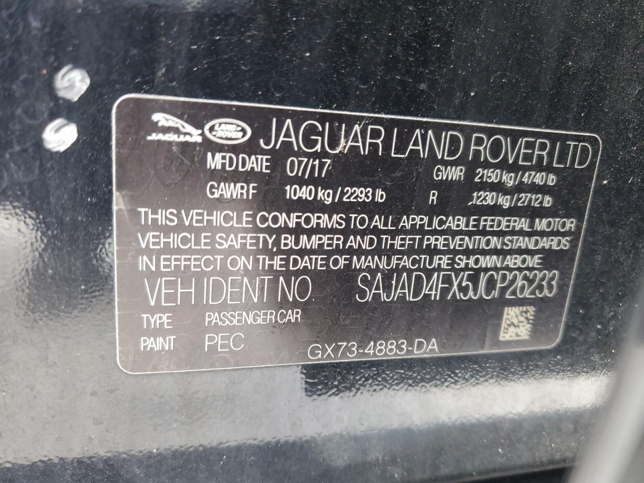 2018 JAGUAR XE - SAJAD4FX5JCP26233, колір - Чорний, 2.0, Бензин, Задній привід із США
