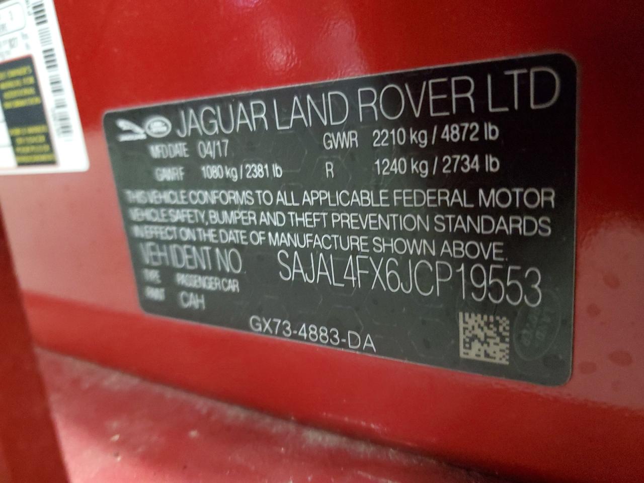 2018 JAGUAR XE - SAJAL4FX6JCP19553, колір - Червоний, 2.0, Бензин, Повний привід із США