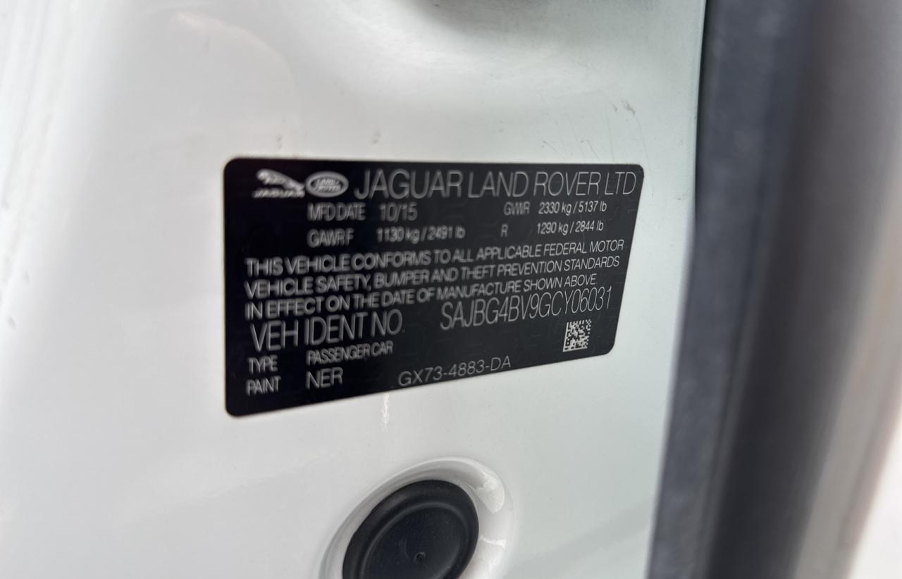 2016 JAGUAR XF - SAJBG4BV9GCY06031, колір - Білий, 3.0, Бензин, Задній привід із США