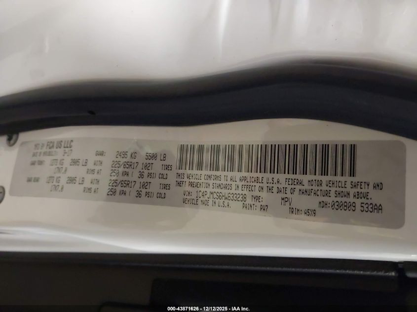 2017 JEEP CHEROKEE - 1C4PJMCS6HW633238, колір - Білий, 3.2, Бензин, Повний привід із США