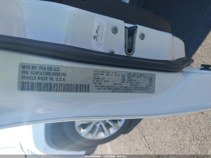 Колір БілийЦиліндри 4Привід Передній привідVIN 1C4PJLCB0LD650180Стан СтаціонарноУшкодження Звичайний знос