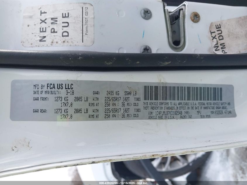 Колір БілийЦиліндри 4Привід Повний привідVIN 1C4PJMLB7KD182548Стан СтаціонарноУшкодження Передня або задня