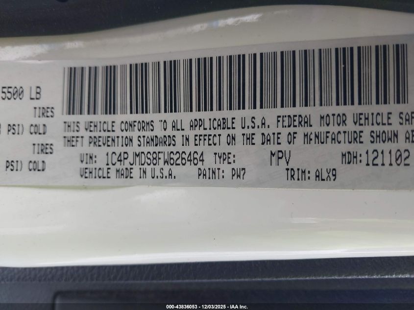 Колір БілийЦиліндри 6Привід Повний привідVIN 1C4PJMDS8FW626464Стан ЗаводитьсяУшкодження Передня або задня