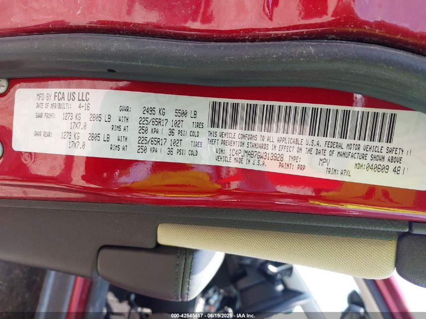 2016 JEEP CHEROKEE - 1C4PJMAB7GW313928, колір - Червоний, 2.4, Бензин, Повний привід із США