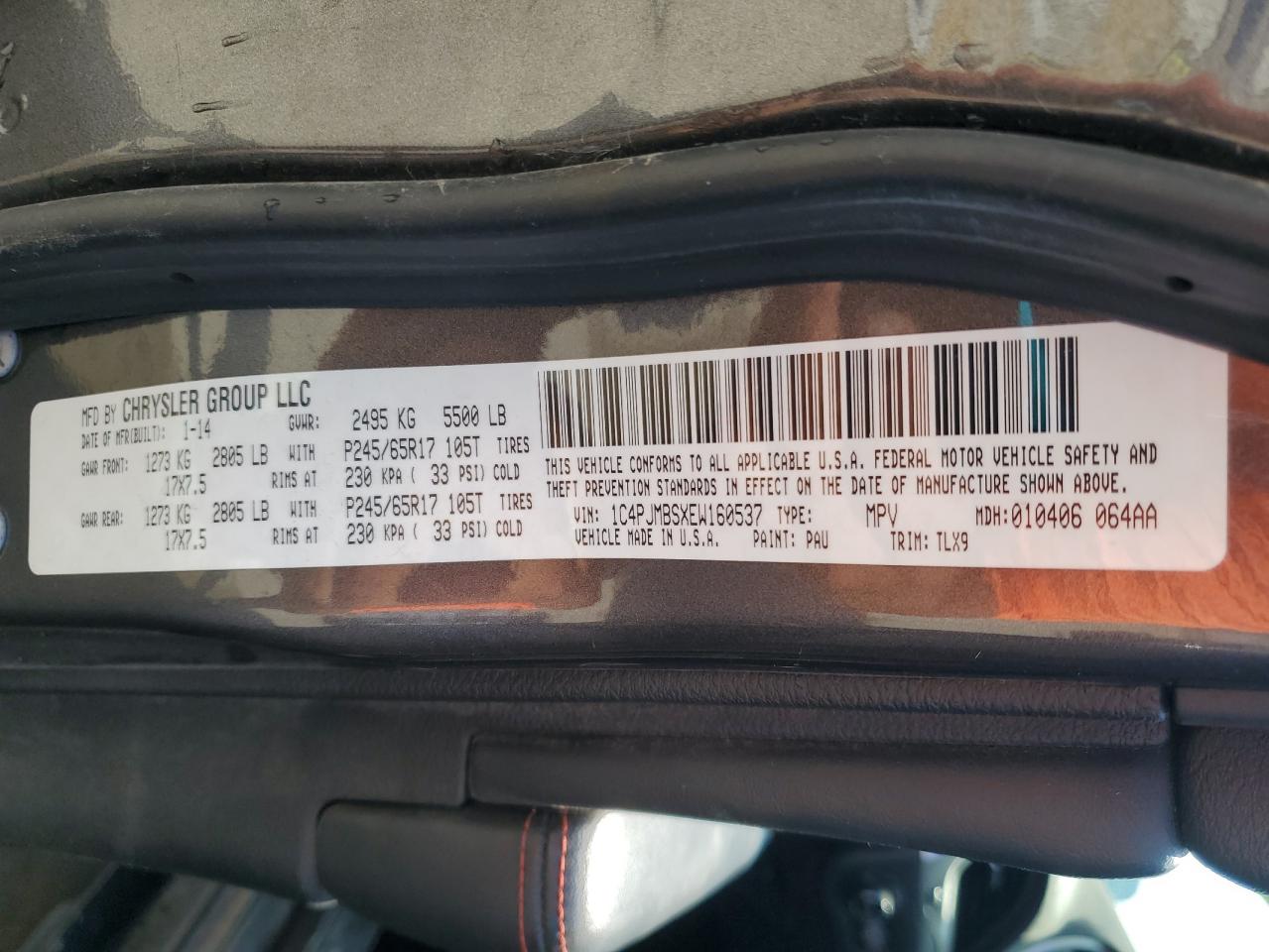 Колір СірийЦиліндри 6Привід 4x4 з переднім приводомVIN 1C4PJMBSXEW160537Стан Заводиться та їде (перевірено)Ушкодження Передня або задняДата аукціона 2025-10-06