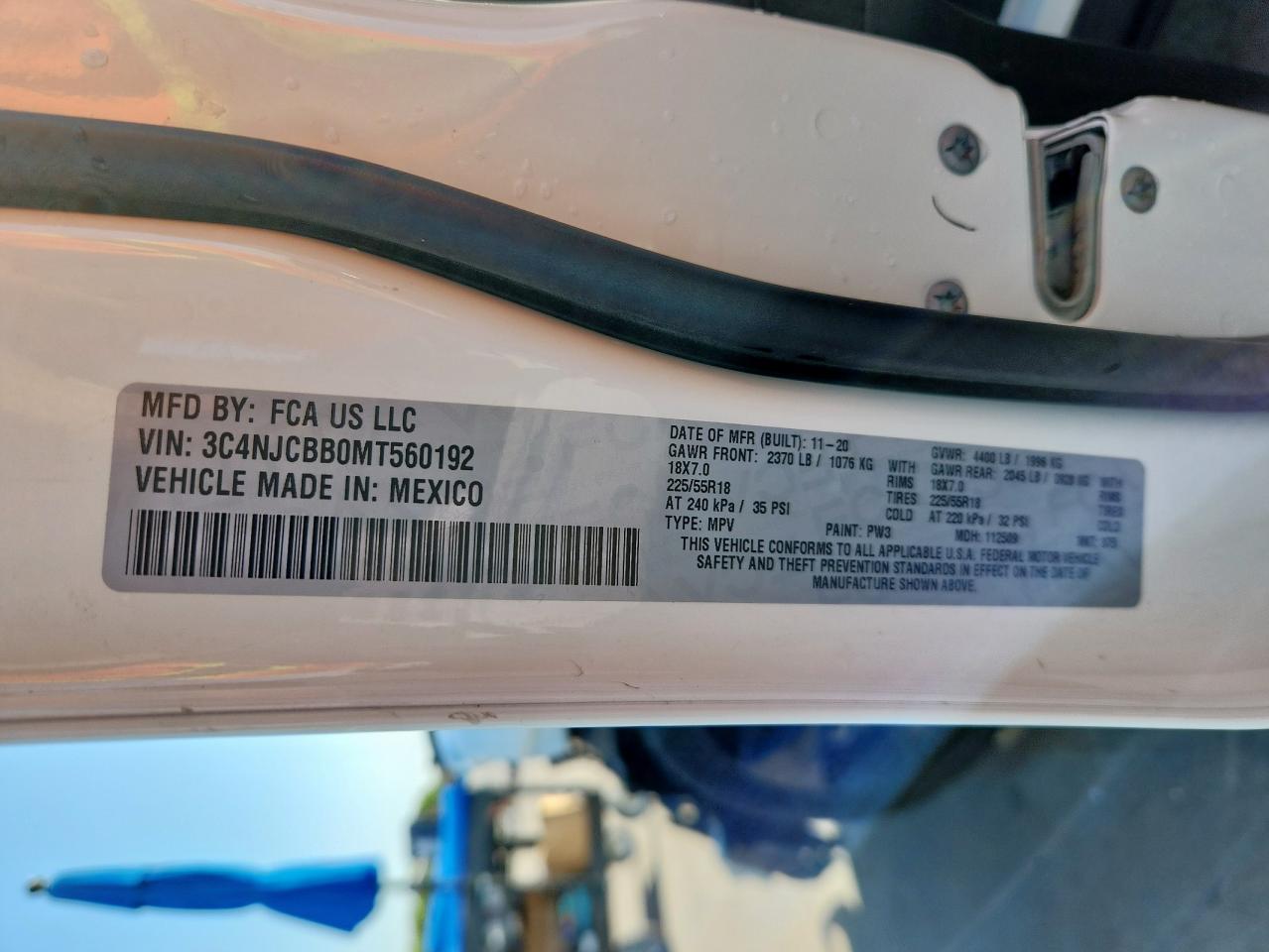 Колір БілийЦиліндри 4VIN 3C4NJCBB0MT560192Стан НевідомоУшкодження Передня або задняДата аукціона 2025-10-09