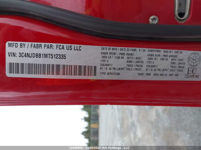 Колір ЧервонийЦиліндри 4Привід Повний привідVIN 3C4NJDBB1MT512335Стан Заводиться та їде (перевірено)Ушкодження НезначніДата аукціона 2025-12-16