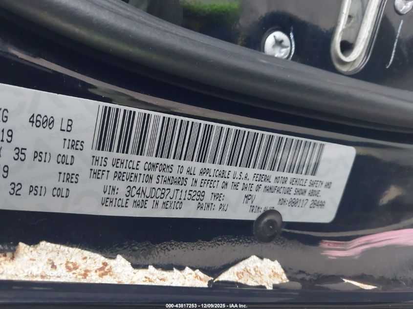 Колір ЧорнийЦиліндри 4Привід Повний привідVIN 3C4NJDCB7JT115299Стан Заводиться та їде (перевірено)Ушкодження Передня або задня