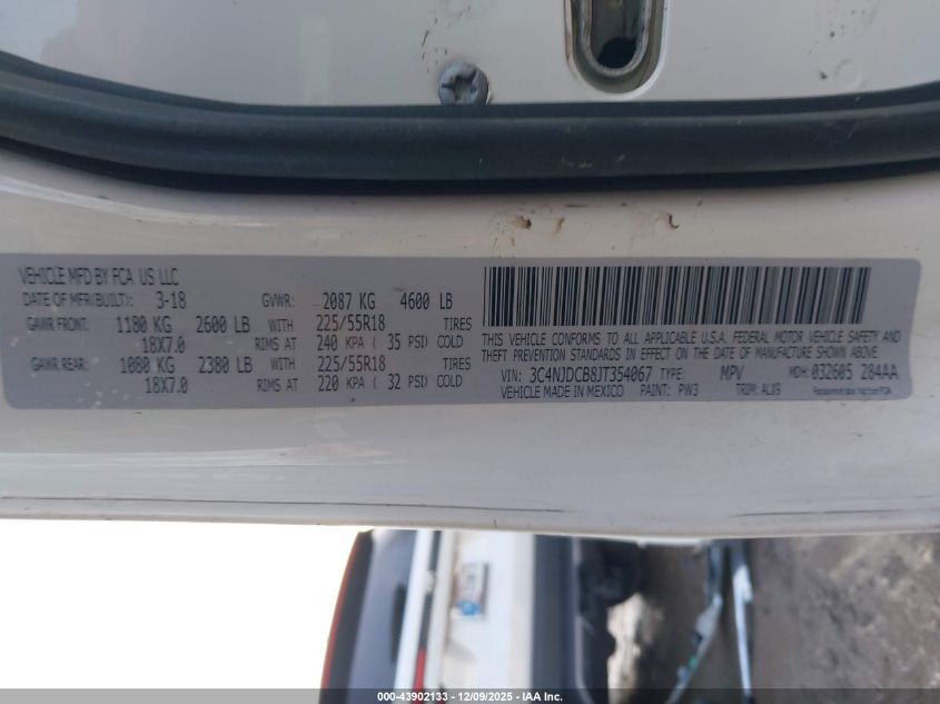 Колір БілийЦиліндри 4Привід Повний привідVIN 3C4NJDCB8JT354067Стан Заводиться та їде (перевірено)Ушкодження Передня права