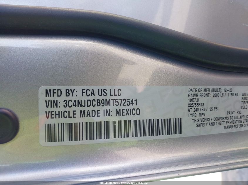 Колір СірийЦиліндри 4Привід Повний привідVIN 3C4NJDCB9MT572541Стан НевідомоУшкодження Передня або задня