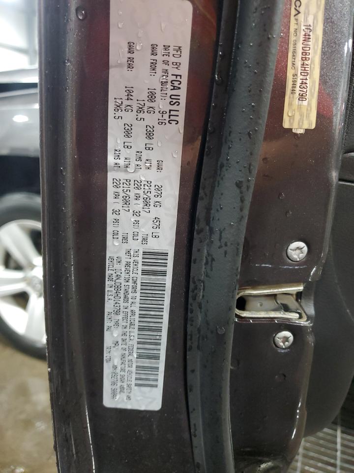 Колір СірийЦиліндри 4Привід 4x4 з переднім приводомVIN 1C4NJDBB4HD143790Стан Заводиться та їде (перевірено)Ушкодження Передня або задняДата аукціона 2025-10-07
